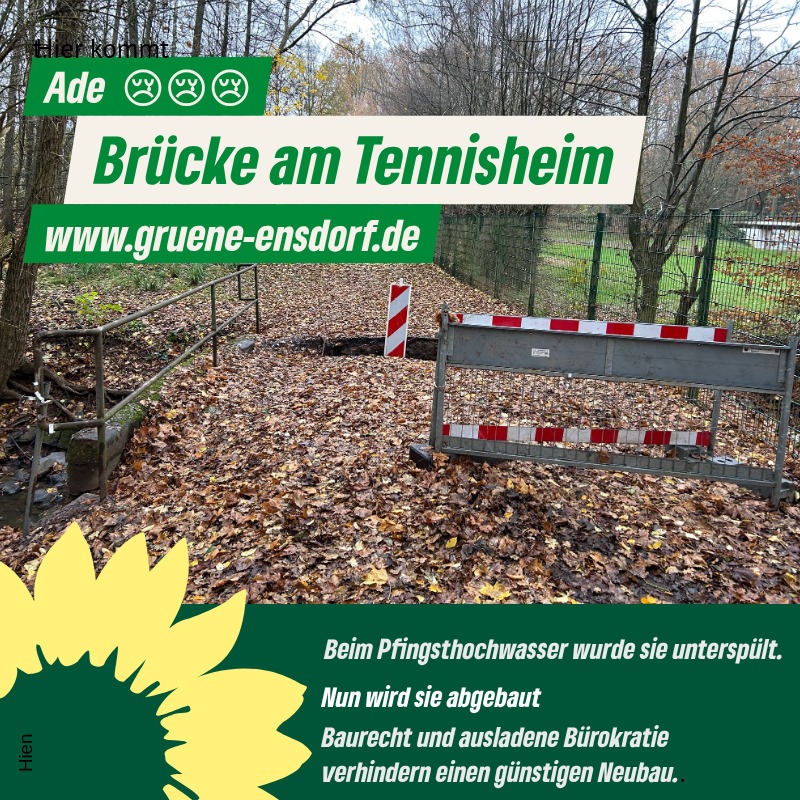 Wir Ensdorfer Grüne setzen uns daher für den Bau einer neuen, zweckmäßigen und kostengünstigen Brücke an dieser Stelle über den Lochbach ein.